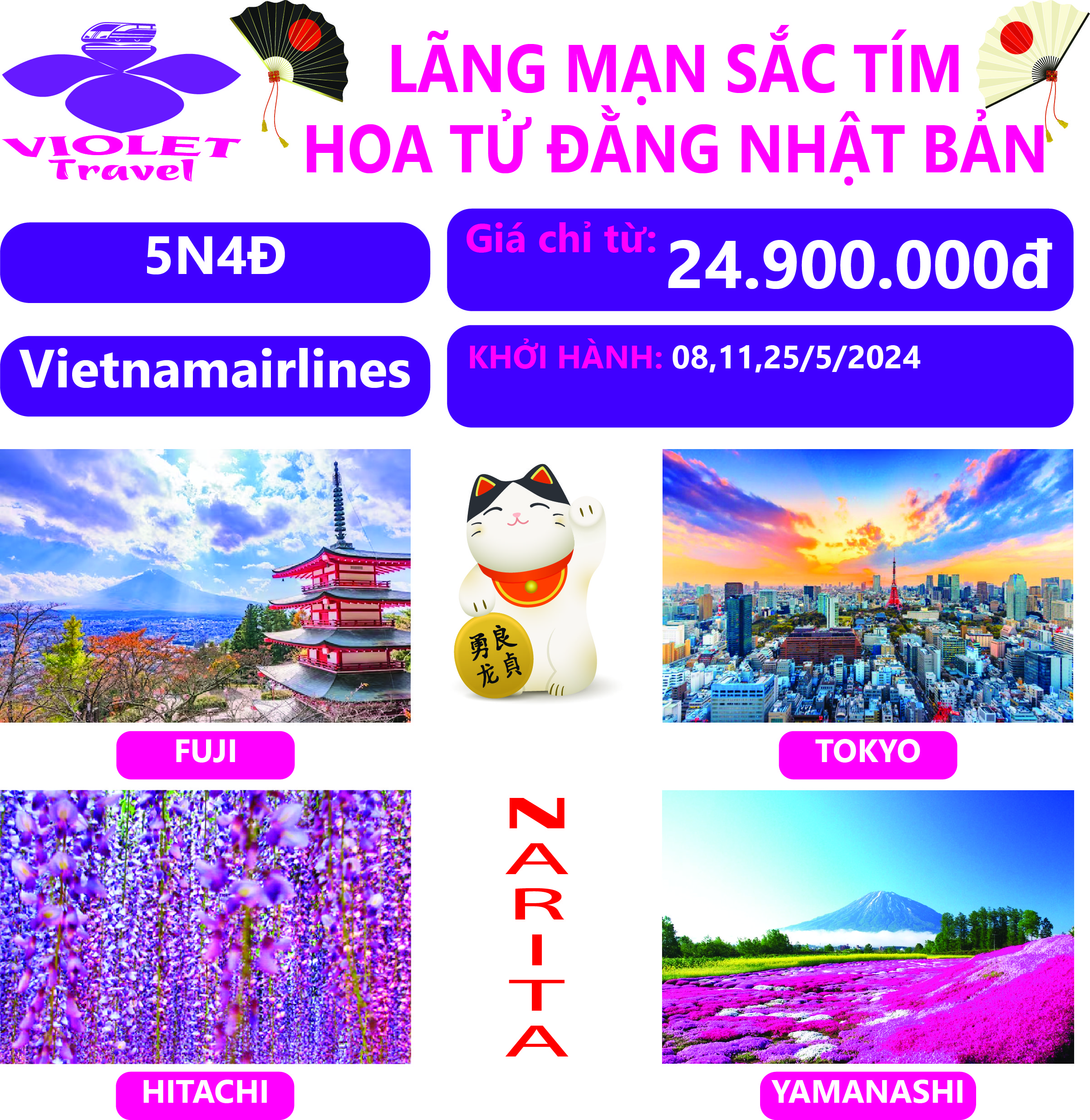 - 21h30 hướng dẫn viên sẽ đón quý khách tại ga đi Quốc tế, sân bay Tân Sơn Nhất làm thủ tục đáp chuyến bay VN300 của hãng hàng không Vietnam Airlines khởi hành đi Narita Nhật Bản lúc 0h30.